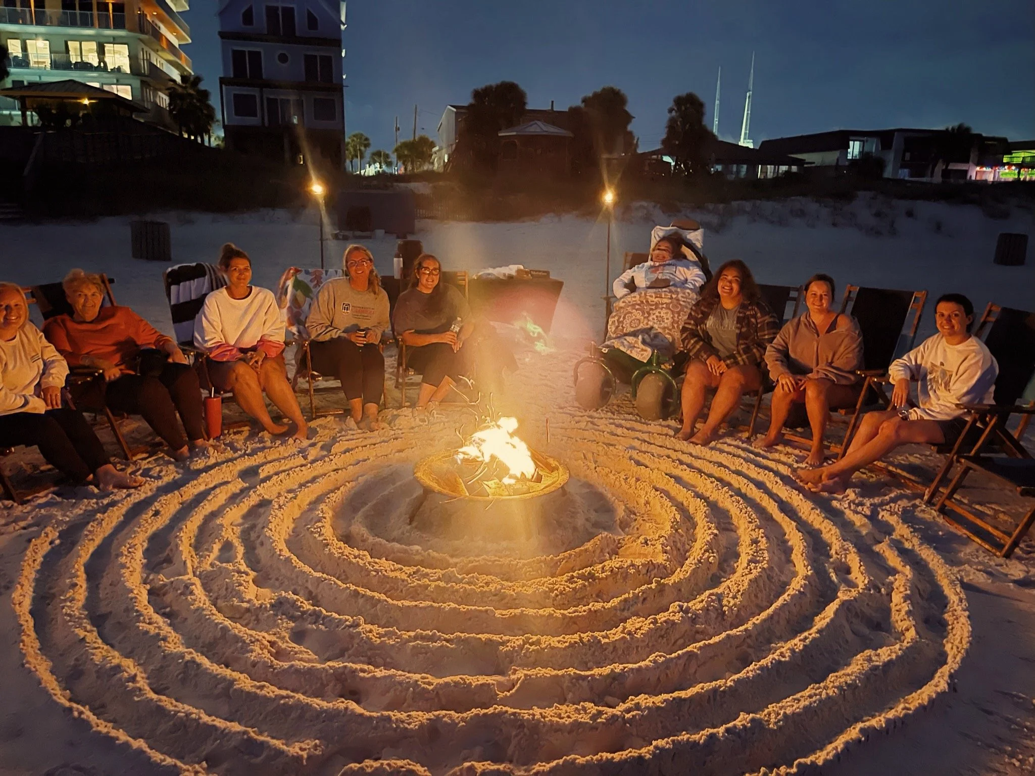 One night, we had booked a bonfire on the beach where a person came out to set it all up. We walked two miles in the sand, in the dark, towards smores and the glow of fire. I was walking in the beach wheelchair with three of Anna’s friends.